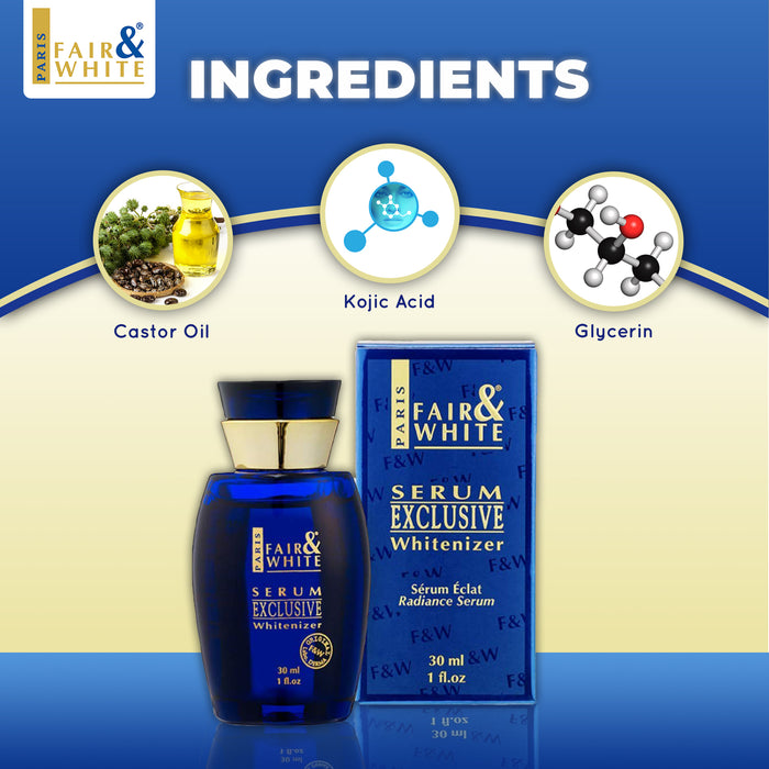 Exclusive Whitenizer Serum is designed to reduce skin discoloration while brightening the overall appearance.
